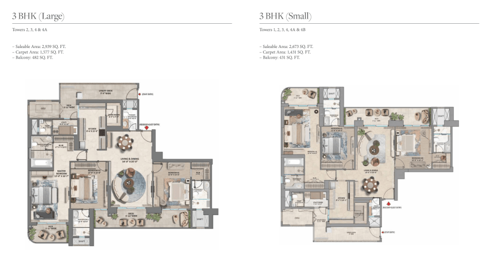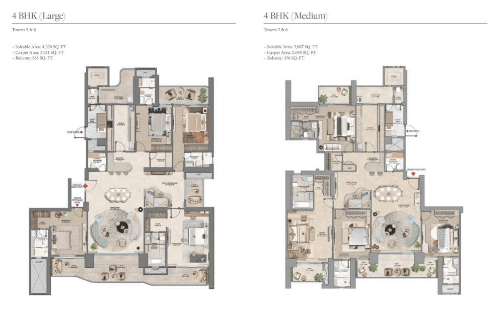 Explore spacious 3 & 4 BHK residences crafted with open-plan layouts, premium fittings, and expansive balconies that offer panoramic city views.